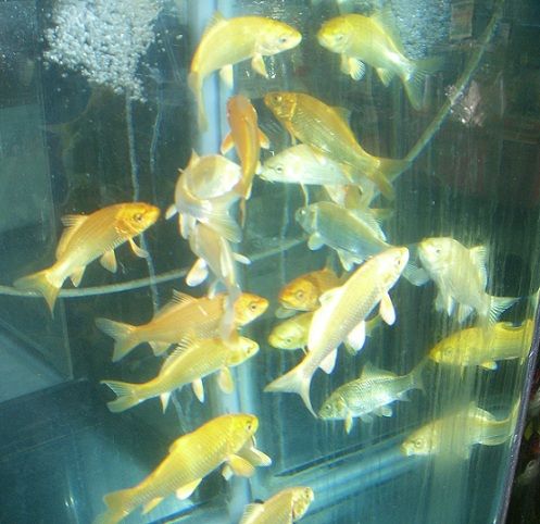 鱗の部分だけが光る改良がなされ、金色あるいは銀色に輝くものをいう。