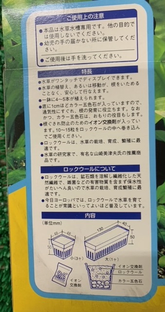 大1個と小3個入りです。 水草の育成、繁殖に最適です。 水草の鉢植え 移動がが根を傷めることなく安心して出来ます。 根腐れが少なく成ります。 ロックウールは水草の根に最適なウールです。