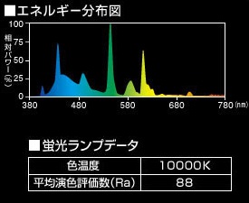 光合成に有効な波長域を含み、さまざまな色をバランスよく含有した演色性の高い(Ra88)水草育成・観賞用ランプです。