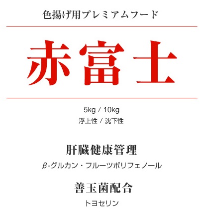 錦鯉の色揚げに優れた効果を示す、スピルリナ・ファフィア酵母(アスタキサンチン源)・パプリカ抽出物(ゼアキサンチン源)・コーン(ゼアキサンチン源)を配合。緋色形成に欠かせない複数の色素源を供給します。